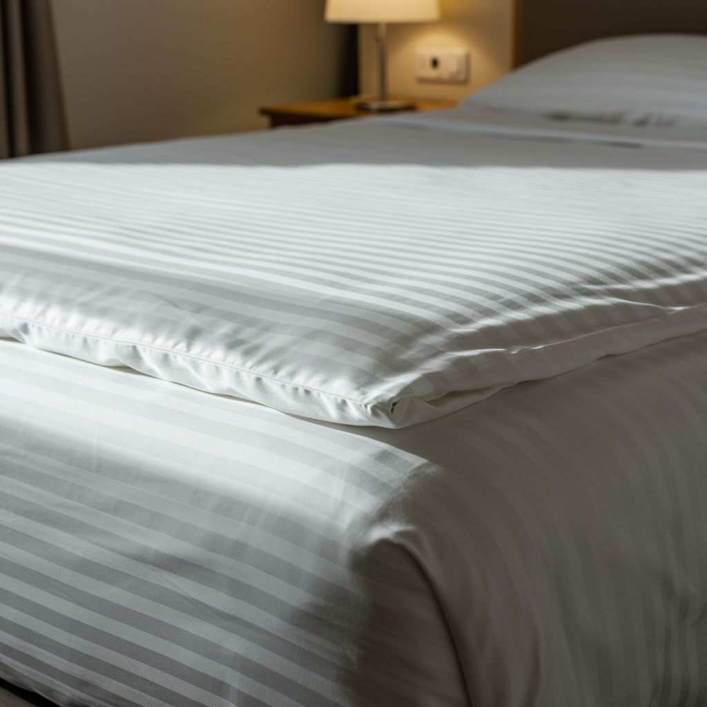 Apportez une touche de luxe à vos chambres simples avec cette housse de couette satinée 300T. Son fini à bandes et sa blancheur durable subliment la literie tout en résistant aux lavages intensifs.